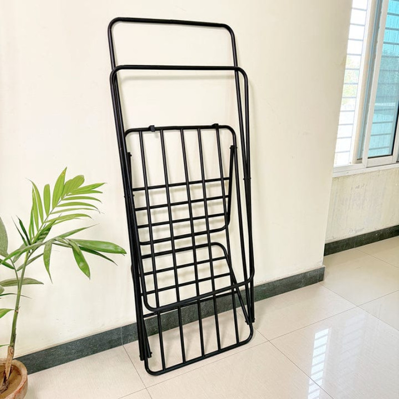Dry your clothes quickly and conveniently with this Foldable Cloth Dryer Stand! This sturdy black metal drying rack opens to a spacious 68 inches in length × 22 inches in width × 34 inches in height, giving you plenty of room for shirts, jeans, towels, bedsheets, and more. It features multiple tiers and strong bars for hanging clothes directly or with hangers. When not in use, it folds flat in seconds for easy storage — perfect for balconies, bathrooms, bedrooms, or small apartments. Lightweight yet strong, it is the ideal space-saving solution for everyday laundry in any home! – Random Colors