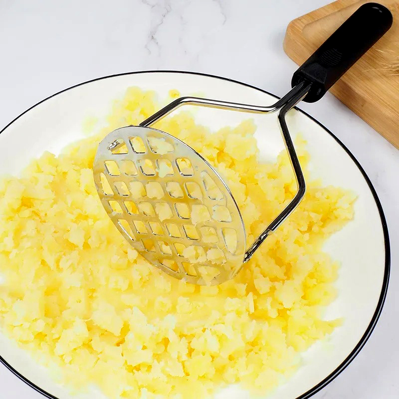 Achieve perfectly smooth mashed potatoes every time with this durable Stainless Steel Potato Pressing Device! Featuring a wide grid-hole mashing plate for effortless pressing, premium food-grade stainless steel that’s rust-resistant, and a comfortable non-slip black ergonomic handle. Ideal for potatoes, sweet potatoes, pumpkins, avocados, boiled eggs, beans, or baby food – easy to use, quick to clean, and dishwasher-safe. Make healthier, lump-free meals in minutes – a must-have kitchen tool for every home!
